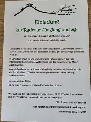 Am 11.08.2024 hat die Dorfgemeinschaft Schweiburg wieder einmal Ihre Jährliche Radtour durchgeführt
